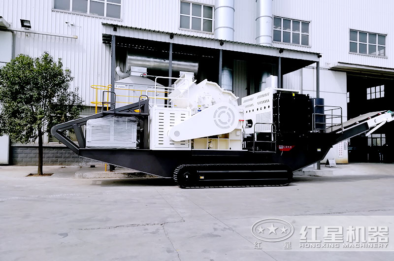 移動(dòng)履帶碎石機(jī)已經(jīng)開到破碎現(xiàn)場(chǎng)